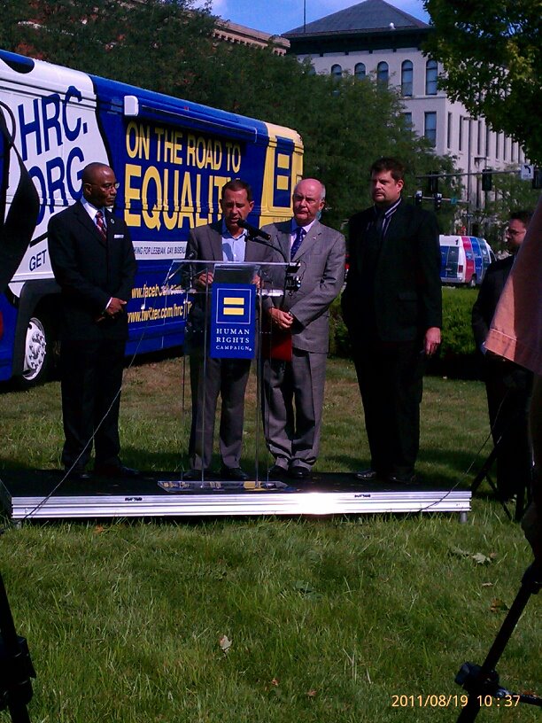 Omaha Mayor Jim Suttle, City Councilman Ben Gray, HRC head Joe Solmonese and CFEP director Jeff Schamp spoke at a press conference on LGBT civil rights issues and officially announce that a Non-discrimination will be reintroduced in the Omaha City Council!   REJOICE!!!!